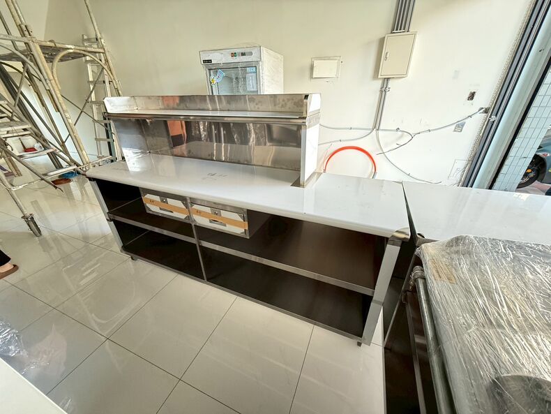 以往舊式早餐店喜愛使用木作吧台,很容易損壞,清潔上也比較難乾淨,白鐵的使用不管在冷或熱都有可以設計規劃的空間,方便業主多方考慮。