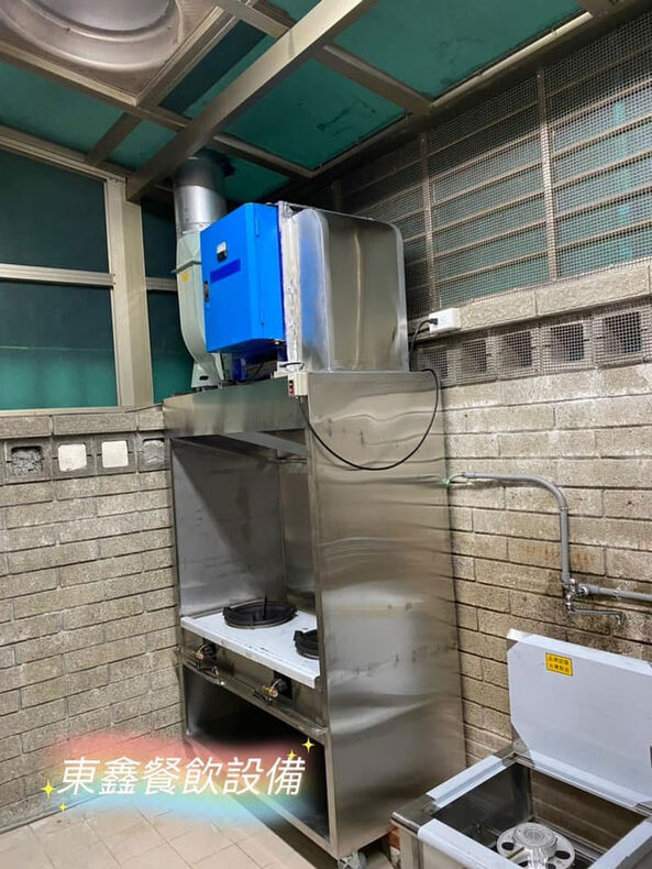 機器不能施工於牆上?不允許或者是心疼牆壁被破壞也沒關係,東鑫餐飲設備幫你直接在炒台上方坐抽風馬達與靜電除油煙機,不釘牆、不破壞,一樣可以達到你的需求!