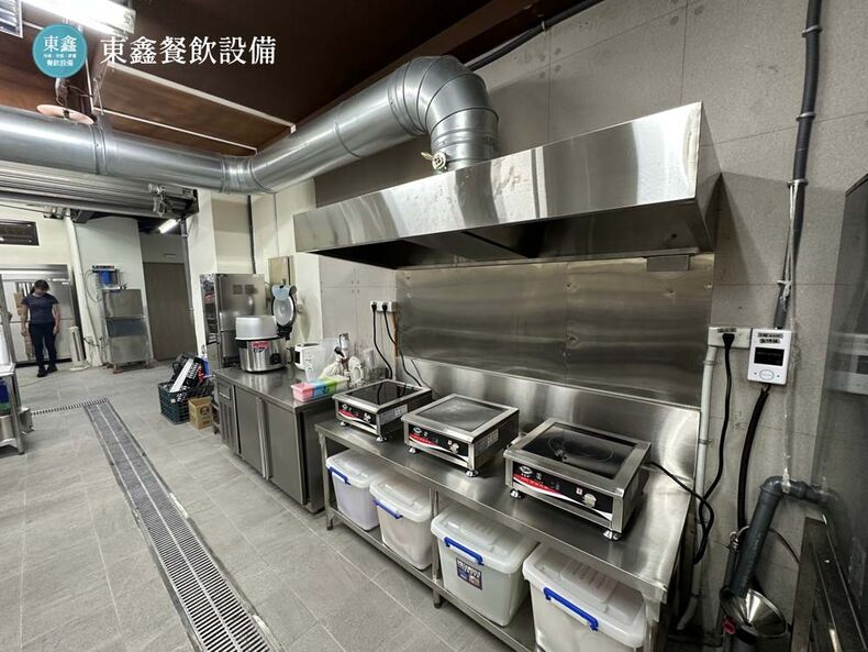 商旅中央廚房規劃,為了能夠應付上百人的餐飲供應,不管是排油煙設備,還是冷藏冷凍的食品囤放,都需要由專業的餐飲設備規劃商做設備規劃。根據春樹商旅的場地不浪費空間,因此在中間部分設計了不鏽鋼工作台。我們都可以依照場地去配合需求,清潔用到水溝施工,到排油煙罩的安裝銜接,都在我們服務的項目內。