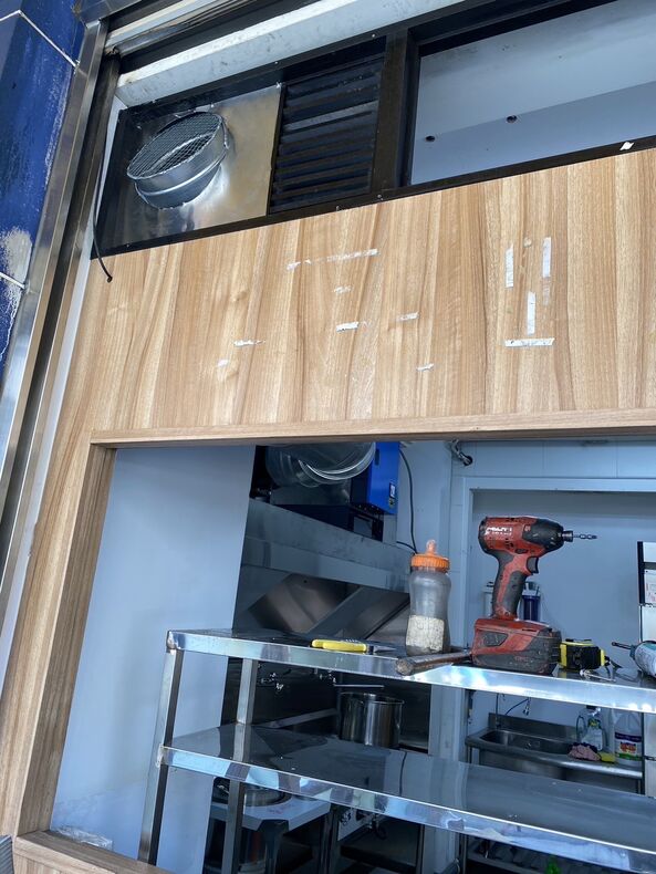 業主本身他身高比較高,所以訂製了比較斜式的煙罩去配合業主的操作
