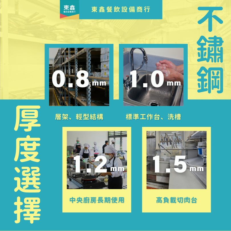 在餐飲業的專業廚房裡,不鏽鋼設備幾乎是每個操作區不可或缺的標準配置。從工作台、洗槽到層架,不鏽鋼材質不僅耐用,更符合食品衛生標準。然而,選對材質與厚度,才能真正兼顧安全、耐用與成本效益。