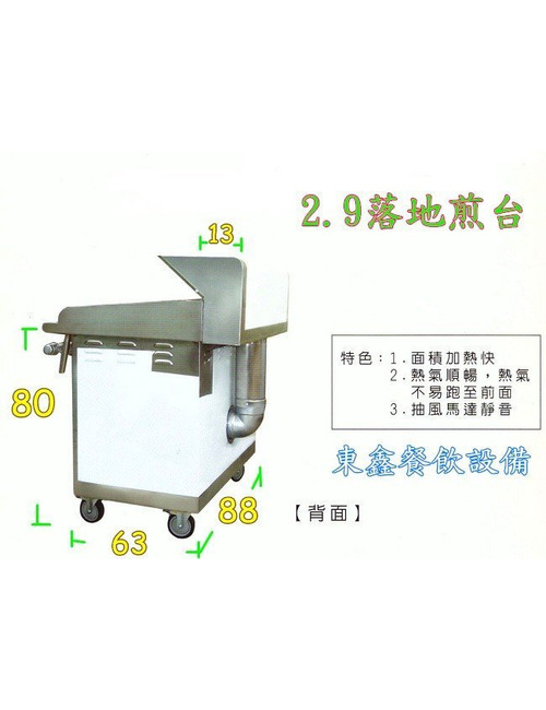 全新 2.9尺落地型煎台 全新 2.9尺落地型煎台 / 台式煎台 / 早餐煎台 / 煎炒台 / 5管式煎台 / 水煎包 / 蔥抓餅 長:88寬:63高:80 Line聯絡分享到FB分享到G+分享到LINEEMAIL到信箱更多商品DETAILS全新 落地型水煎包 鍋貼專用台DETAILS全新 F3001-F3005 銀品 牌 落地型抽風煎台(全組)DETAILS全新 F2001-F2005 銀品 牌 落地型煎台 無馬達煙罩DETAILS全新 F1001-F1005 銀品 牌 桌上型煎台
