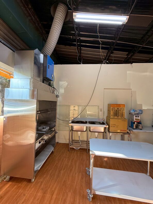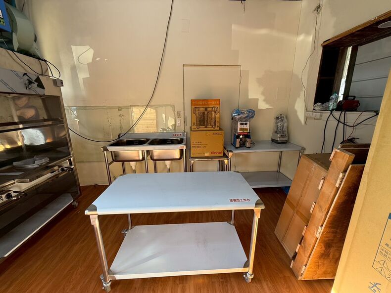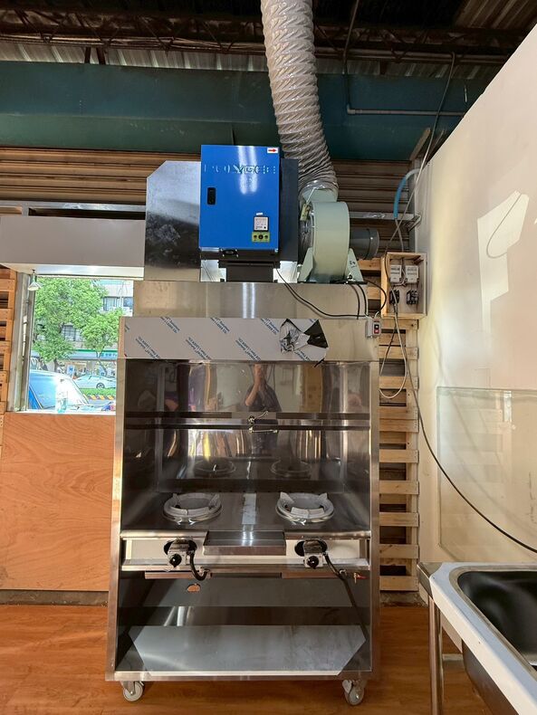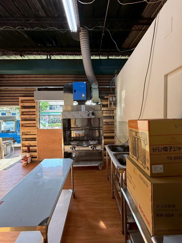 我們將靜電機還有馬達架設在炒台上方,排風管接上前一位業主留下的管路,屋頂管路旁的矽利康加強塗抹,補強管線久來會漏水的問題。水槽上也特別設計90公分高,讓洗碗洗菜這件事不再腰痠背痛。